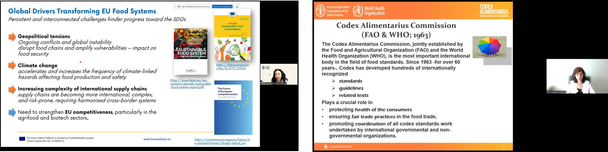 The webinar featured insights from leading experts in the field including Dr. Veronica Maria Teresa Lattanzio, Research Director and Food Policy Expert, who presented on “The Future of Food Safety in Europe: Update of the Regulatory Framework and Research Needs on Novel Foods”, and Dr. Betül Vazgeçer, Vice-Chair of the FAO/WHO Codex Alimentarius Commission, who discussed about “Novel Foods: The Role of Codex Alimentarius in Ensuring Safety and Trust.” Their presentations provided participants with a deep understanding of both the European regulatory landscape and the global standards shaping food safety today.